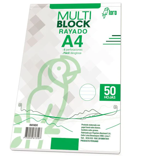 El block rayado A4 Loro ofrece una gran calidad. Está hecho de un material de papel resistente de 70 grs, con una línea rayada a 1 cm de distancia para escribir con precisión. Viene con 50 hojas unidas con gomas en forma de anillo para un fácil transporte. Planea tus ideas con este block para obtener resultados profesionales.