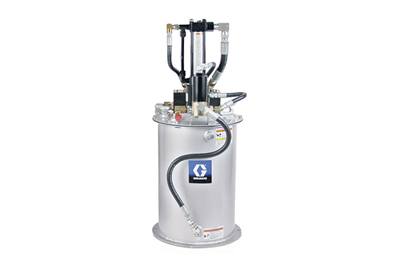 La bomba hidráulica cuenta con un sistema de lubricación automática de Graco que proporciona una reposición continua de lubricante evitando costosas fallas de componentes. Compatible para usar con sistemas de lubricación móvil todoterreno Dyna-Star® 10: 1.