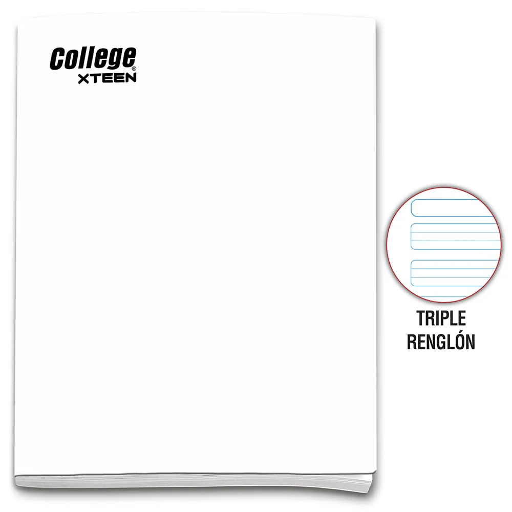 Cuaderno triple renglón A4 x 80 hojas blanco Xteen