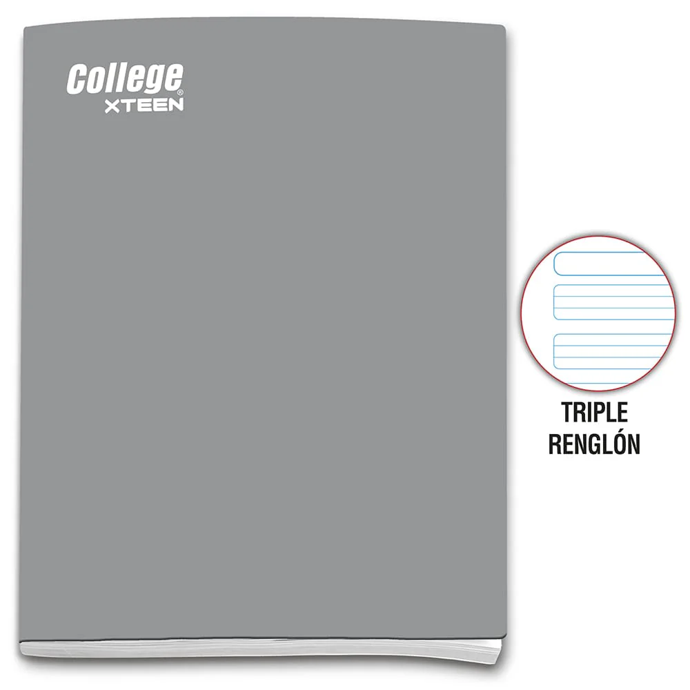 Cuaderno triple renglón A4 x 80 hojas plomo Xteen