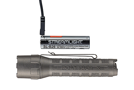 La linterna de mano Streamlight PolyTac X ha sido diseñada para brindar durabilidad y un agarre seguro, cuenta con un sistema recargable completo que incluye el nuevo Streamlight SL-B26™ batería recargable USB de iones de litio protegida con un puerto de carga micro USB integrado.