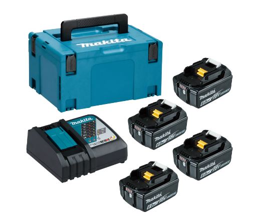 SKU: MAKPAC 4 BATERIAS 6.0AH 18V LXT (BL1860B) + CARGADOR SIMPLE RAPIDO 198140-7 MAKITA Categoría: ,