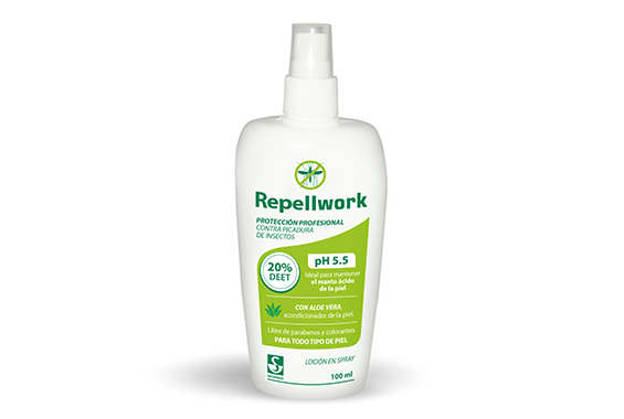 El repelente de insectos Repellwork Sunwork PH5.5 nos garantiza una protección contra los insectos hematófagos durante un máximo de 4 horas, ya que contiene 20% de DEET (sustancia repelente de insectos). Posee un PH5.5 en su composición que es ideal para mantener el manto ácido de la piel y de esta forma, protege la piel frente a infecciones, irritaciones, alergias e irritación y evitar que se reseque. Además, dentro de su composición contiene aloe vera que aporta a la hidratación de la piel. No es tóxico y está libre de parabenos.