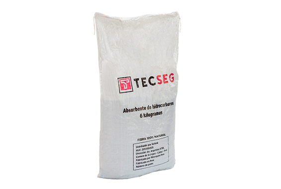 Los sacos absorbentes Tecseg 62997 están rellenos con fibra 100% orgánica y biodegradable. Además, presentan capacidad hidrofóbica, son químicamente inertes y cuentan con una acción instantánea de absorción ante cualquier tipo de hidrocarburo en tierra, tales como petróleo, gasolina, aceites de alta y baja viscosidad, líquidos hidráulicos, grasas y todo tipo de partículas oleosas.