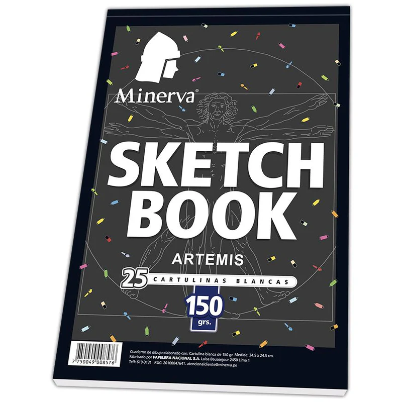 Sketch book cartulinas blancas encolado x 25 hojas Minerva
