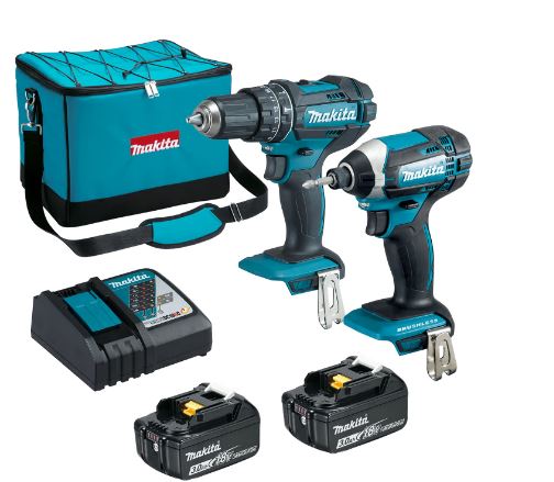 TALADRO DHP482 + ATORNILLADOR IMP DTD152 + 2 BAT 3.0AH + C DLX2131 MAKITA